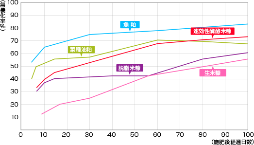 ほうれん草や春菊のように直接種をまく場合には、施肥後1週間程度熟成させてから種をまくと早くから効果をあらわします。