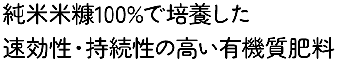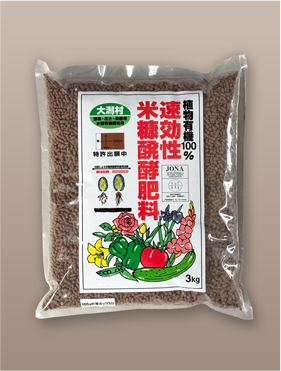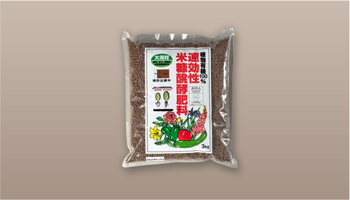 古くから注目されてきた米糠の栄養価を肥料として有効に利用することを目的に米糠100%を原料源に、数種類の微生物で培養して製造した、速効性であり、また持続性の高い有機肥料です。